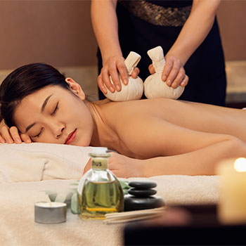 Die thailändische Kräuterkompresse wird über heißem Wasserdampf erwärmt und anschließend auf den Körper gepresst. Traditionell wendete man Kräuterkompressen zusammen mit Massage an. Zuerst werden die schmerzenden und ermüdeten Muskeln massiert, dann wird die Problemstelle mit der Kompresse bearbeitet.